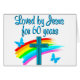 Celebrating 60 years of the love and peace of Jesus Christ. Delight this Christian and spiritual 60 year with this beautiful and vibrant rainbow, butterfly, and cross 60th birthday design on Tees, Mugs, Tote Bags and Gifts. Your spiritual and God loving 60 year old will adore this unique and one of a kind 60th customised birthday gift that she will treasure every year. Celebrate turning 60 with an encouraging faith filled design. God danced the day this beautiful 60 year old was born.