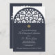 A beautiful, religious invitation, in navy blue and white, featuring a decorative arch. The gold cross can be dragged to any location, made larger or smaller (+ -), or eliminated. (<a href='https://www.freepik.com/free-vector/vector-wedding-card-laser-cut-template-vintage-decorative-elements_1317890.htm'>Designed by Freepik</a>). <br/><br/>The card is easy to customise with your wording, font andfont colour.<br/><br/>Not exactly what you're looking for? All our products can be custom designed to meet your needs at no extra charge.<br/><br/>Simply contact us at askcottonlamb@gmail.com.<br/><br/>Coordinating products available: Just ask us!