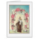 Beautiful vintage image of the Blessed Virgin Mary, Our Lady of Mount Carmel with red roses.