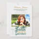 Whether your grad is graduating from a Christian school, will be entering a Christian study or you are simply a family with strong religious faith, this elegant graduation announcement with photo and name in green, white and gold is a beautiful spiritual way to announce your daughter or son's graduation. Many thanks to Adian Voicu for allowing the use of one of his lovely portraits.