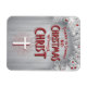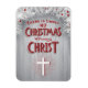 Christian christmas card with elegant calligraphy typography featuring the message, "There is simply no Christmas without Christ." Design appears with red and white type and cross icon with light rays on wood and fir background with red christmas ornaments. Inside can be customised Inside can be customised with your own personal message but has this placeholder message: "For unto you is born this day