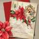 Featuring a beautiful image of Blessed Mother Mary holding the Baby Jesus, Inlaid in a gold frame, overlaid on a poinsettia design with a bow. This includes a scripture verse. All text and fonts may be modified.