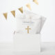 Personalised Religious Cross Blue Boy First Communion Favour Bags. Part of the Dusty Blue Script Cross Boy First Communion Suite with matching invitation, stationery and first communion party accessories.