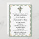 Religious invitation with green cross and daisies. Border has green floral print with white daisy corner accents. Can be easily customised for First Holy Communion, Confirmations, Baptism or Christening invitations. They come with envelopes and your choice of paper.