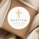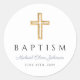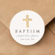 Religious Cross Dusty Blue Script Boy Baptism Classic Round Sticker