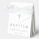 Personalized Religious Cross Dusty Blue Script Boy Baptism Favor Box.