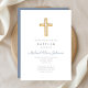Religious Cross Dusty Blue Script Boy Baptism Invitation