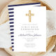 Religious Cross Navy Blue Boy First Communion Invitation.