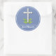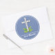 Religious Cross on Blue Grey Classic Round Sticker