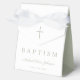 Religious Cross Sage Green Script Boy Baptism Favor Boxes .