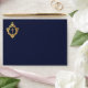 Religious Elegant Navy Blue Faux Gold Cross Crest Envelope