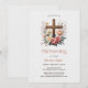 Honour the blessed occasion of your baby girl's christening with this elegant and traditional invitation. Featuring a beautifully designed cross surrounded by soft pink and cream flowers, this personalised card is perfect for celebrating your daughter's special day. With a focus on Catholic and Christian faith, this invitation provides all the important event details, including the church ceremony and reception. Perfect for families seeking a meaningful and timeless way to announce this religious milestone with loved ones.