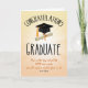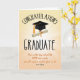 A graduation is a time for rejoicing, and this religious card shares that joy with the graduate. A black cap and diploma with a yellow-gold tassel and ribbon are in the middle of the card in the centre of the starburst background. Congratulations and ask God’s blessings on the new graduate.