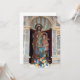 A beautiful religious statue in a church in Ibiza showing a holy group with flowers and a beautiful marble surround