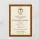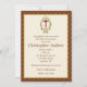 Religious invitation with ornate cross and decorative maroon border. Can be easily customised for First Holy Communion, Confirmations, Baptism or Christening invitations. Invitations come complete with envelopes.