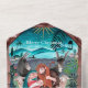 A cute religious hand painted nativity scene blue, red Mary & Joseph and baby Jesus. Original artwork by Caroline Bonne Müller