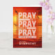 Stunning religious sympathy card with Pray on it, pray over it, pray through it message of support, and a bold seascape sunset.
