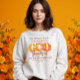 Choose this beautiful Thanksgiving sweatshirt template with “God Shower Us with Your Blessings”. The word "God" is elegantly ornate with colorful fall leaves and autumn pumpkins, followed by your family name or the person's name. Below, you have space to add your favorite scripture verse. A great gift for your mom, aunt, grandmother, wife, or hostess. Happy Thanksgiving!