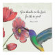A hummingbird is feeding from a red cosmos flower. This watercolor image offers joy and peace as you let someone know you are thinking of them and thanking God for them.