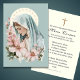 Showcasing a lovely religious image of the Blessed Virgin Mary with pink flowers and adorned with a crown of twelve stars. All text and fonts are in Spanish and can be personalised. The prayer featured is the Hail Mary in Spanish."