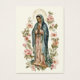 Showcasing a lovely religious image of the Blessed Virgin Mary, Our Lady of Guadalupe with pink flowers. All text and fonts are in Spanish and can be personalised. The prayer featured is the Hail Mary in Spanish."