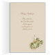 with the Child Jesus holding a chalice with a white floral bouquet below. A similar design is inside with the holy rosary and a scripture verse on the right side. All text and fonts can be modified for any occasion.