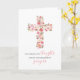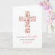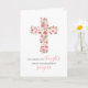 Religious womens sympathy card featuring a plain white background, a pink watercolor floral cross, the words "you are in our thoughts, and in our heartfelt prayers", and a deepest sympathy message on the inside.