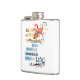 Well made flask, a little better than I had expected. Flask came in clear plastic box which gave it a nice presentation when I took it out of the zazzle packaging. Image is not printed on flask but on sticker. Don't know how this will hold up I haven't used it yet. This would make a Great gift! I plan to purchase more for friends! Cheers. I thought a little brighter than computer. Very crisp, writing wasn't
