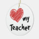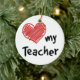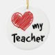 Customise this fun and loving ornament for your favourite teacher. It's the perfect gift for teacher during the holidays or Teacher Appreciation Week. Hang it on the tree or in the classroom for a festive touch that'll warm any educator's heart. Whether it's for a Teacher Day school theme or Valentines Day vibe, the big red heart says "Love my Teacher" wherever it goes.