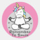 Remember to smile Kawaii happy unicorn doing yoga Classic Round Sticker