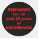 REMEMBERI'm 18with 32 yearsofEXPERIENCE! Classic Round Sticker