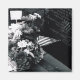 Black and white portrait of a bouquet left at the base of the Vietnam War Memorial in Washington, D.C.