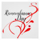 This elegant poster features a rich red background with an artistic design and red poppies gracefully floating around. In bold black cursive writing, 'Remembrance Day' takes center stage. It's a poignant and stylish tribute to honor those who sacrificed for our freedom.