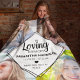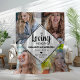 A modern memorial fleece blanket featuring 4 photographs with a modern diamond shaped label under a modern memorial template that can be customized easily. All font styles, sizes and colors can be changed easily by clicking on the customize further link after personalizing.