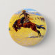 Button featuring Frederic Remington’s oil painting Cold Morning on the Range (1904). A cowboy rides a brown and rambunctious horse. A great gift for horse lovers and the Old West.