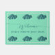 Carnival glass green with deep teal blue creates a peachy feel to your welcome mat. Request to removes shoes at the door is a gentle reminder to guests.