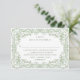 Renaissance Ornate Floral Sage Green Wedding RSVP Card