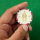 Here, a knight raises his sword in salute. On the reverse, the tower that holds his fair love. Meant to evoke the sketches of the great artists of the Renaissance, this playing token can be used for checkers, nine-mans-morris, a thank-you gift, or, of course, playing poker. Alter the colours of the rims to have two opposing sets, or use in conjunction with the Asian Inspired Playing Token.