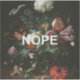 Vintage circa 1660 still life flowers oil painting with "nope" text quote added.