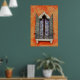 Poster featuring painting of a beautiful Italian Renaissance window with blue Venetian glass