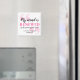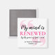 This is a Christian positive affirmation magnet, where I have used a popular Bible quote to make a positive declaration. The text reads 'MY MIND IS RENEWED BY THE POWER OF GOD'S WORD', which is based on Romans 12:2. The design shows black script and bold pink typography with pale pink curly speech marks against a white background. At the bottom, the text reads MY POSITIVE AFFIRMATION and ROMANS 12:2, which is CUSTOMIZABLE, so you can either create your own text or add your name. This would be a great way to remember to declare positive affirmations throughout the day, eg. each time you go past the fridge. An ideal gift for birthdays, stocking stuffers at Christmas, favour giveaways at church, or to encourage someone to master a negative thought life by declaring God's Word.