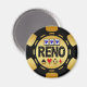 Show your love for Reno, Nevada and gaming with this custom gold and black poker chip design.