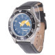 My husband loves the watch, he likes the dial, the graphics, the band, and it keeps perfect time.