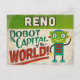 A funny Reno Nevada vintage travel postcard featuring a friendly robot with fun retro style text that says, "Reno, Robot Capital of the world!"