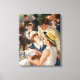 Renoir Impressionism painting Luncheon of the Boating Party - The beautiful painting was created by famous impressionist artist Renoir in 1880-1881. It is one of Renoir's most famous paintings, capturing an atmosphere of ease and fun. Friends are sharing food, wine, and conversation. The painting was done in France, on a balcony looking over the Seine at the Maison Fournaise restaurant in Chatou. This is where Parisians went to rent boats, party, and have a wonderful time. People are chatting away, having a fun party underneath the red and white canopy.