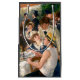 Renoir Impressionism painting Luncheon of the Boating Party - The beautiful painting was created by famous impressionist artist Renoir in 1880-1881. It is one of Renoir's most famous paintings, capturing an atmosphere of ease and fun. Friends are sharing food, wine, and conversation. The painting was done in France, on a balcony looking over the Seine at the Maison Fournaise restaurant in Chatou. This is where Parisians went to rent boats, party, and have a wonderful time. People are chatting away, having a fun party underneath the red and white canopy.