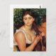 Renoir The Braid postcard. Oil painting on canvas from 1884-86. This beautiful painting was completed during Renoir’s rejection of impressionism. The Braid (Suzanne Valadon) depicts a pretty young woman in a low cut dress braiding her long dark hair. The girl lowers her dark eyes demurely away from the viewer. In the background one can make out the green leaves of a nearby bush. A great gift for fans of Renoir, French art, and beautiful portrait painting.