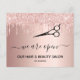 A flyer for potential customers regarding the reopening your hair and or beauty salon business after Covid-19, the corona virus. A rose gold gradient background, with glitter drips and a black scissors. On front: The text: We are open. Personalize and add your name and address.