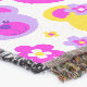 A repeat teddy bear faces and flowers bold graphic patterned throw in bright pink, purple, yellow and white, original pattern design by Sarah Trett. Would look great in a girls bedroom or in a playroom.