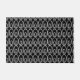 This doormat has a mid-century modern design of a small oval inside a bigger oval on a field of black.